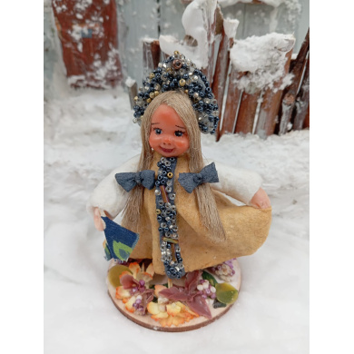 Высота игрушки составляет 10-13 см, что делает её идеальным украшением как для ёлки, так и для интерьера в течение всего года. Она может стать центральным элементом праздничной композиции или уютным акцентом в домашнем декоре.